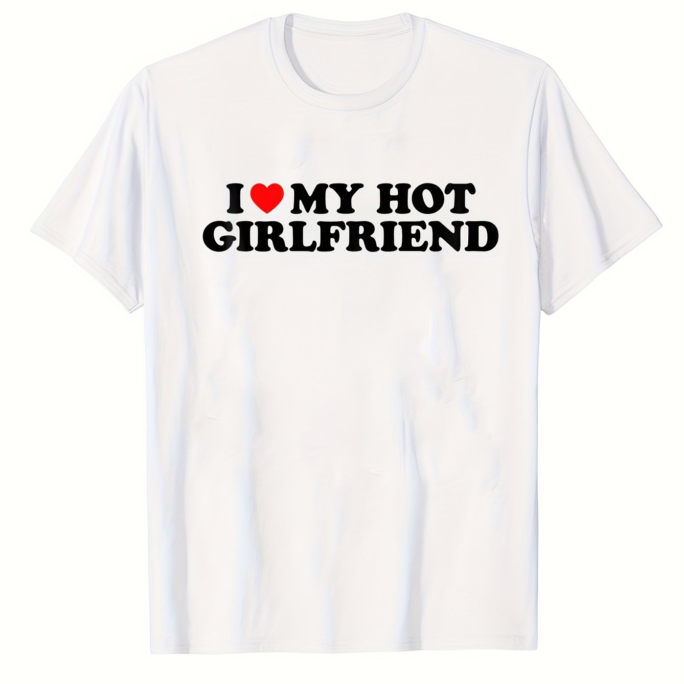 Men's Casual Short Sleeve Crew Neck "I Love My Hot Girlfriend" T-Shirt