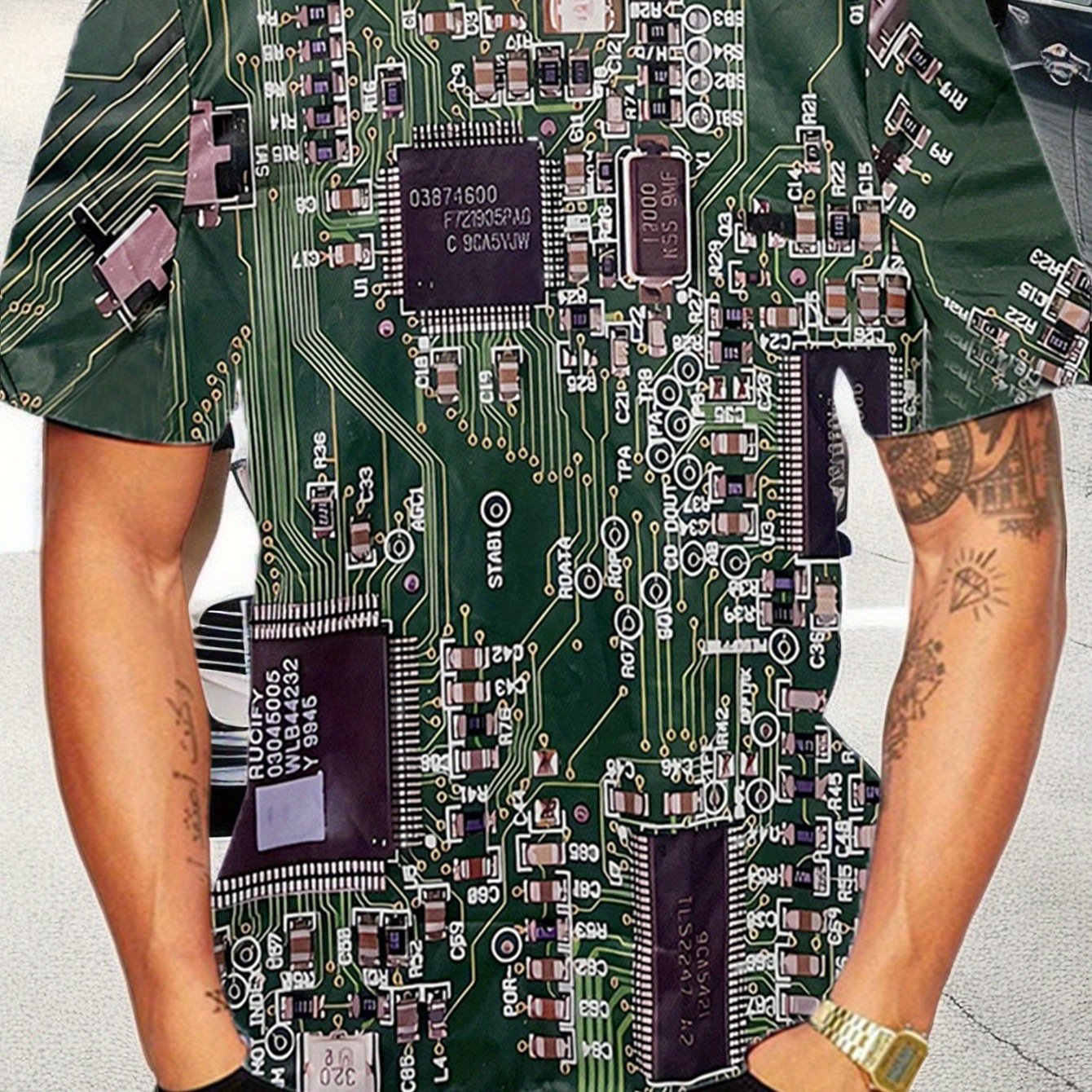 This men's casual tee features a cool, geometric pattern, perfect for a street-style look. Made from a comfortable polyester knit fabric with a slight stretch, it offers a regular fit and is suitable for all seasons. The shirt has a classic crew neck and is designed with positioning printing to ensure the pattern looks great. It's a stylish and easy-to-care-for addition to your casual wardrobe.